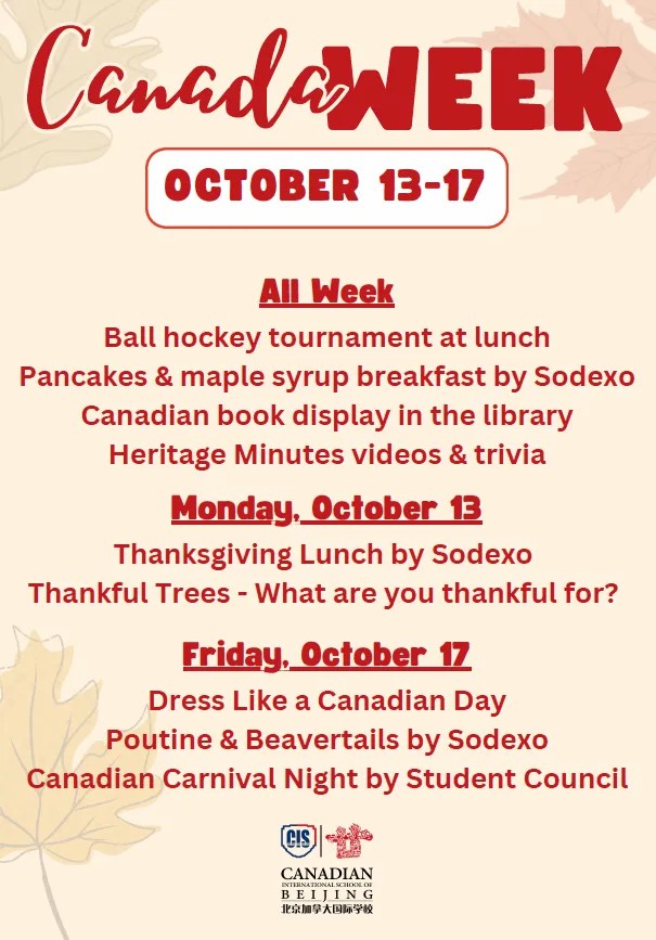 As the Canadian International School of Beijing, our heritage is deeply rooted in Canadian traditions, values, and community spirit. Canada Week is our time to honor these roots, while sharing with our students, families, and staff, the rich history, culture, and traditions of Canada.