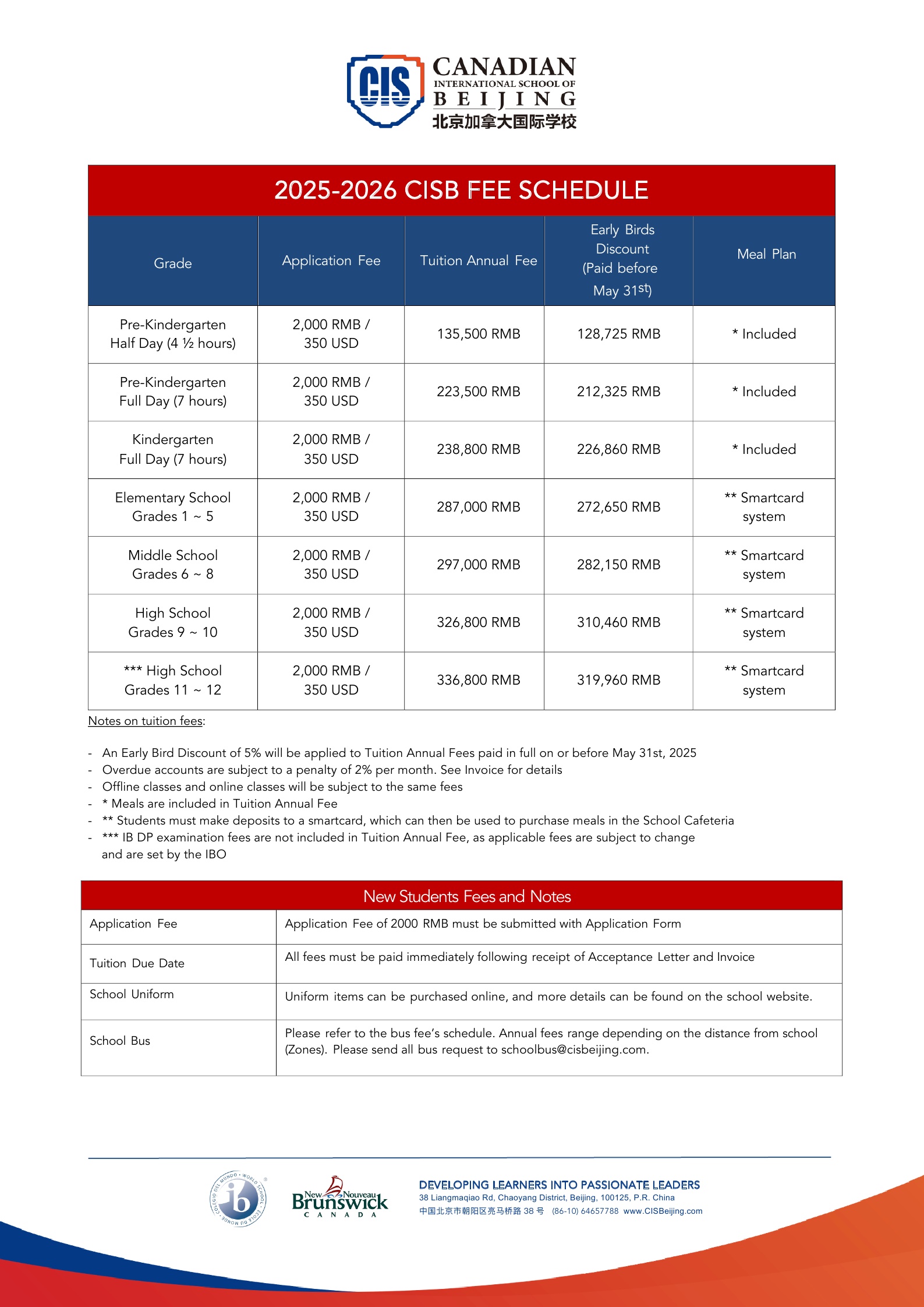 CISB School Fees FollowFollowFollowFollow  (+86-10) 6465 7788  Email us  Canadian International School of Beijing38 Liangmaqiao Rd., Chaoyang DistrictBeijing, China 100125